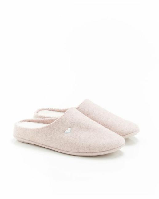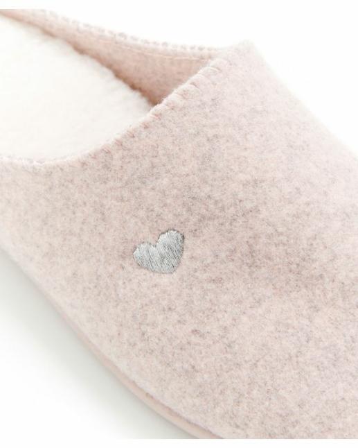 Damart Chaussons | Femme Mules Avec Coeur Brodé Rose Tendre