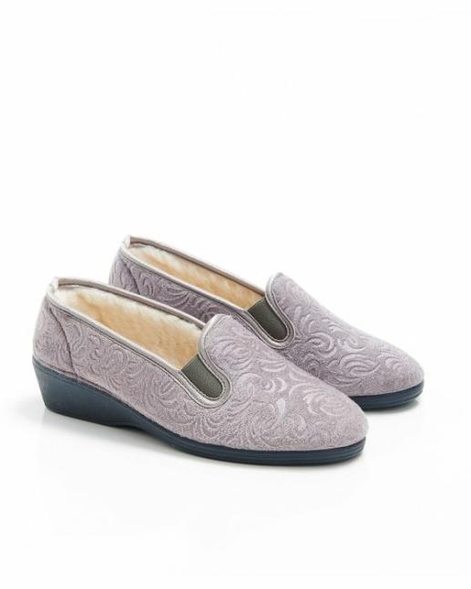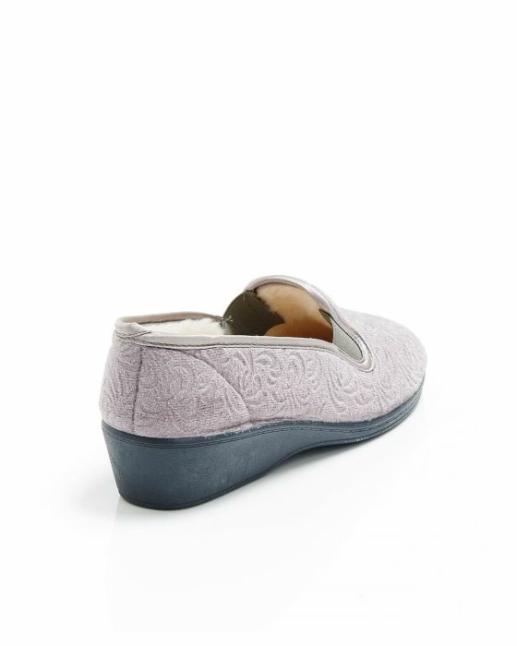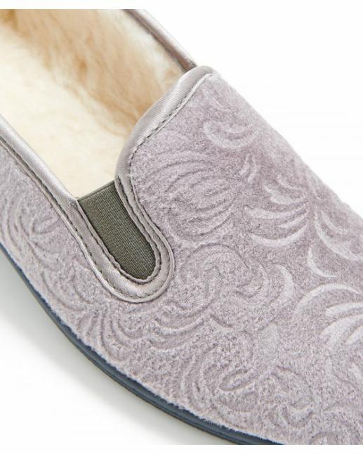 Damart Chaussons | Femme Pantoufles Velours, Motif Cachemire Gris