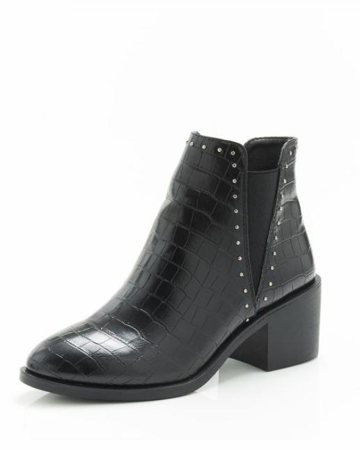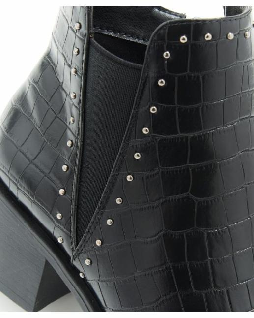 Damart Chaussures | Femme Boots Aspect Croco, Semelle Amovible Noir