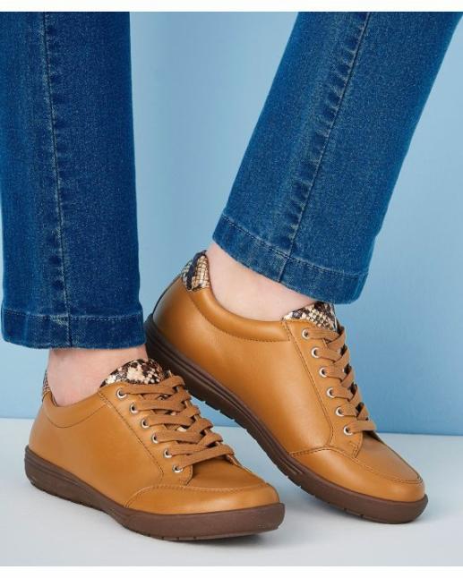 Damart Chaussures | Femme Tennis À Lacets Avec Fantaisie Serpent Muscade