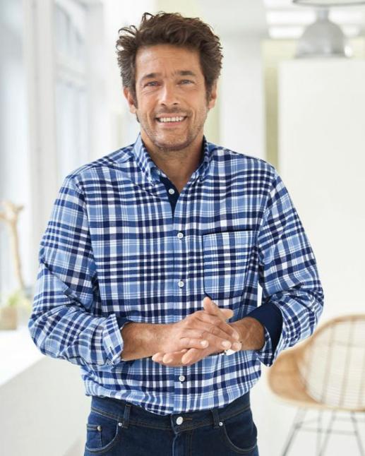 Damart Chemises | Homme Chemise Chaude À Carreaux Carreaux Bleu Ciel