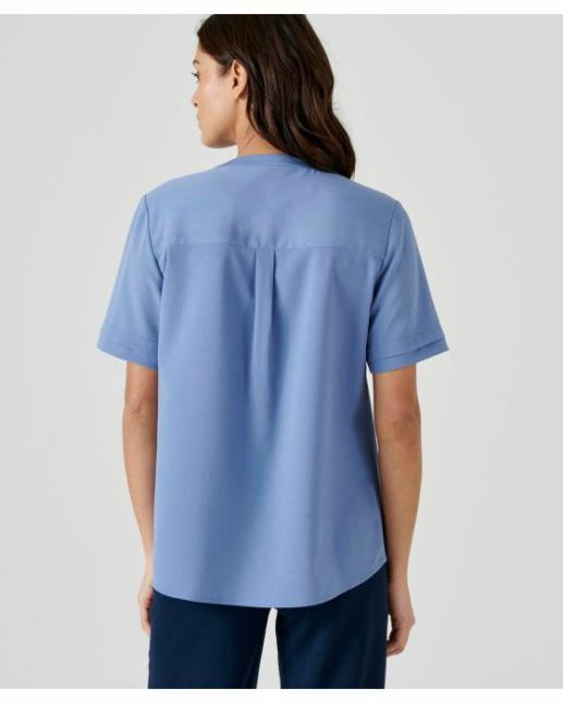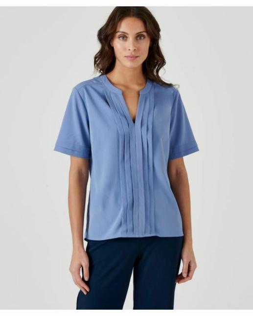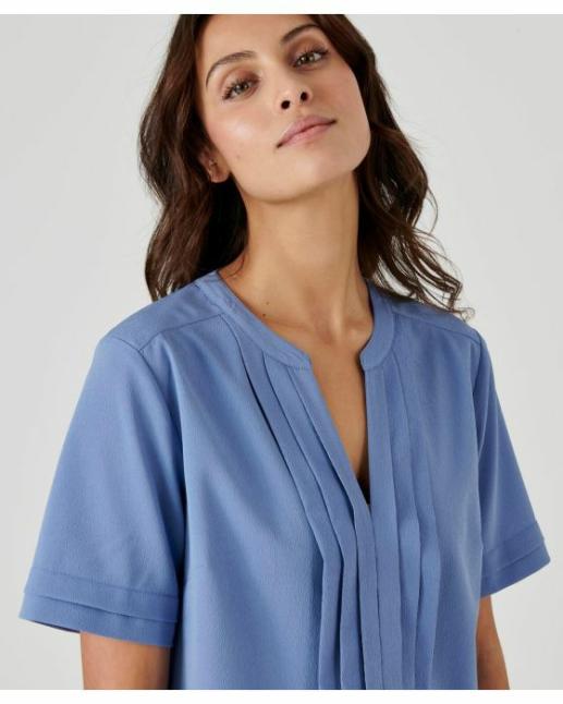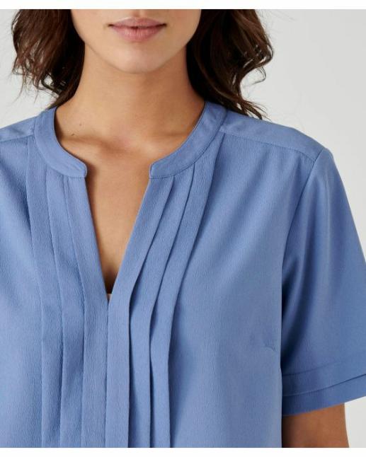 Damart Chemisiers, Tuniques | Femme Blouse À Plis Unie Manches Courtes Bleu Lavande