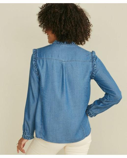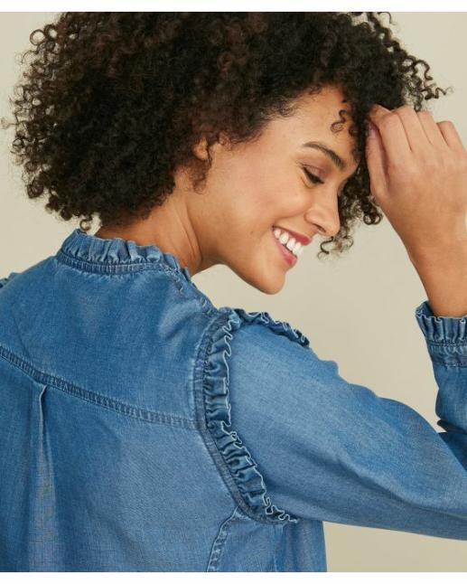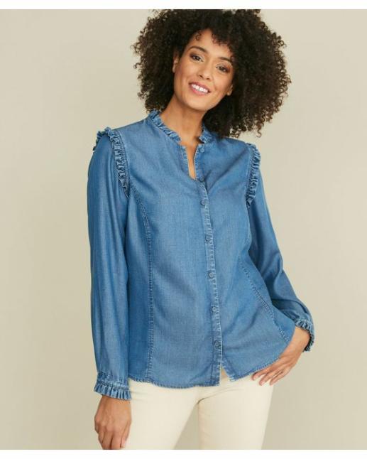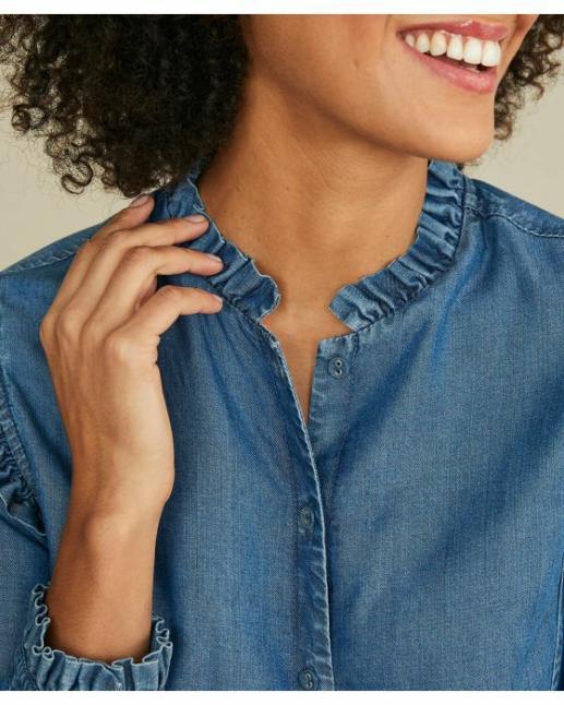 Damart Chemisiers, Tuniques | Femme Chemisier À Volants Tencel Denim