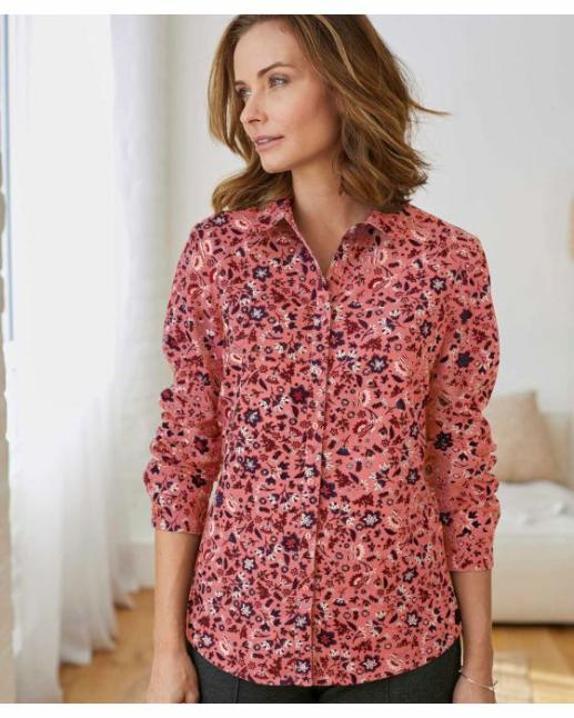 Damart Chemisiers, Tuniques | Femme Chemisier Fleuri En Flanelle Rose Imprimé
