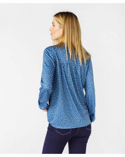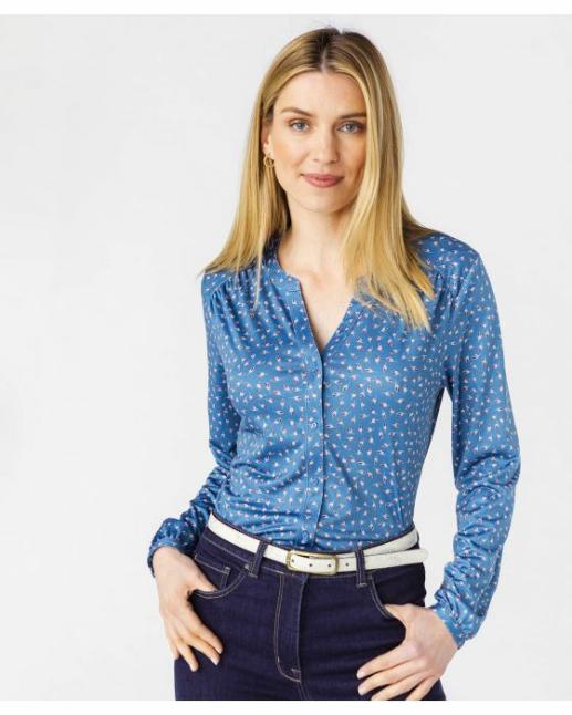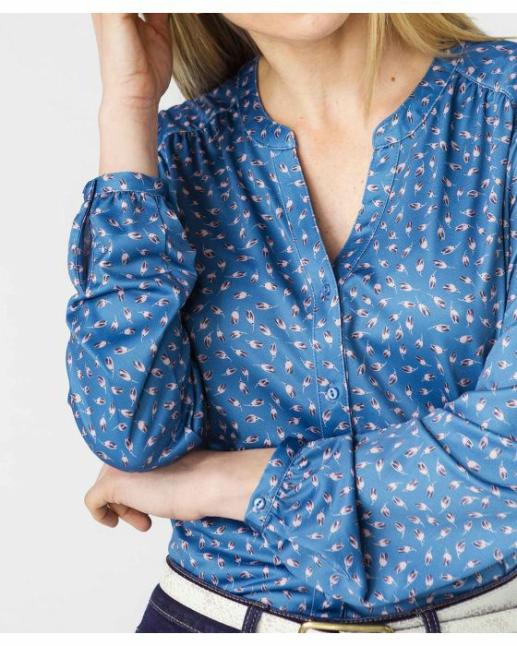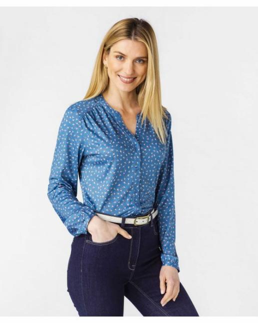 Damart Chemisiers, Tuniques | Femme Chemisier Imprimé Feuilles Bleu Imprimé