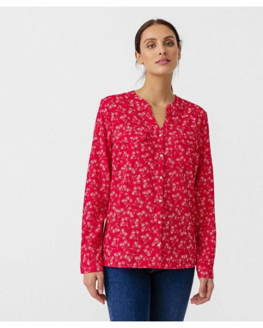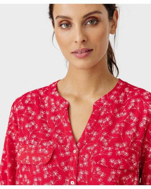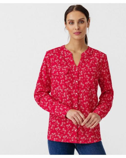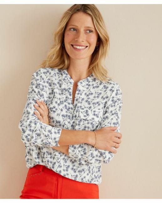 Damart Chemisiers, Tuniques | Femme Chemisier Léger En Crêpe Imprimé Blanc Cassé Imp. Fleurs Marine