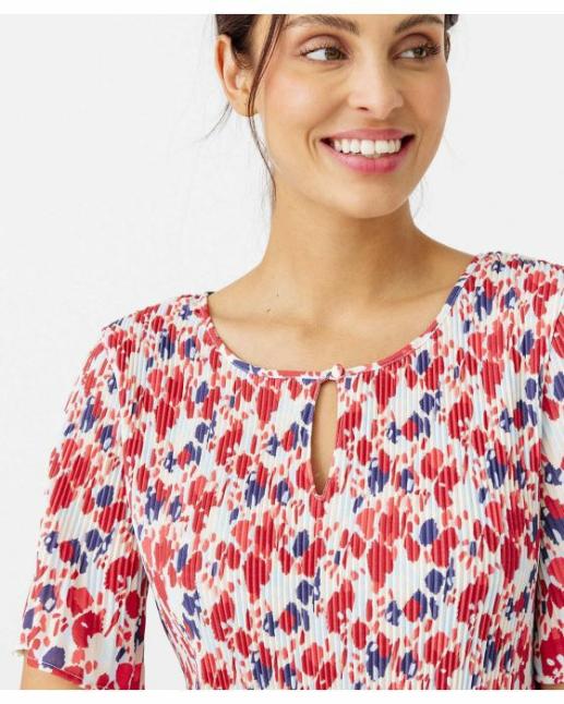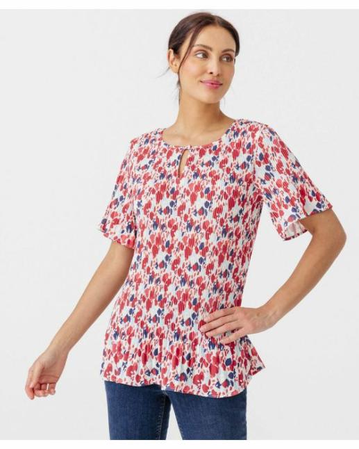 Damart Chemisiers, Tuniques | Femme Top Plissé En Crêpe Rose Imp.