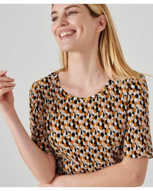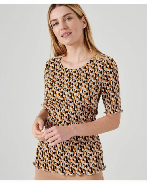 Damart Chemisiers, Tuniques | Femme Top Plissé Permanent Jaune Tachiste