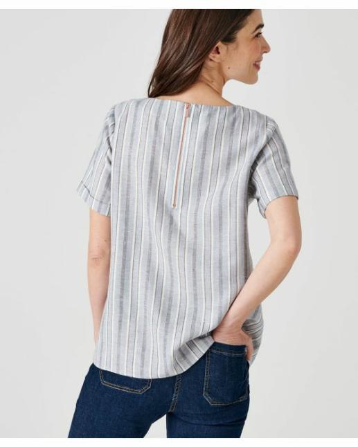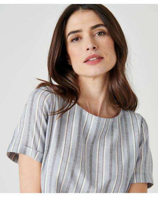 Damart Chemisiers, Tuniques | Femme Top Rayé Mélange Lin Gris Rayé