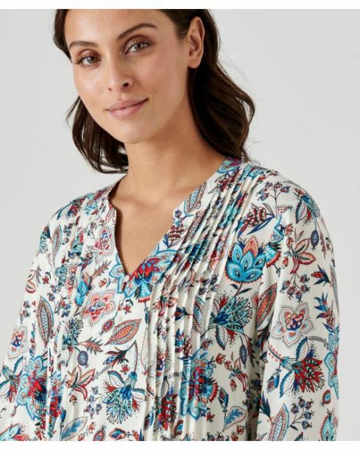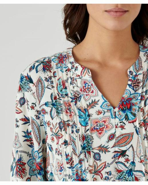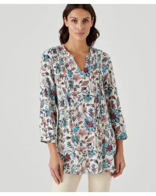 Damart Chemisiers, Tuniques | Femme Tunique Fantaisie Plis Piqués Jaune Imprimé