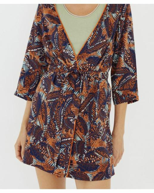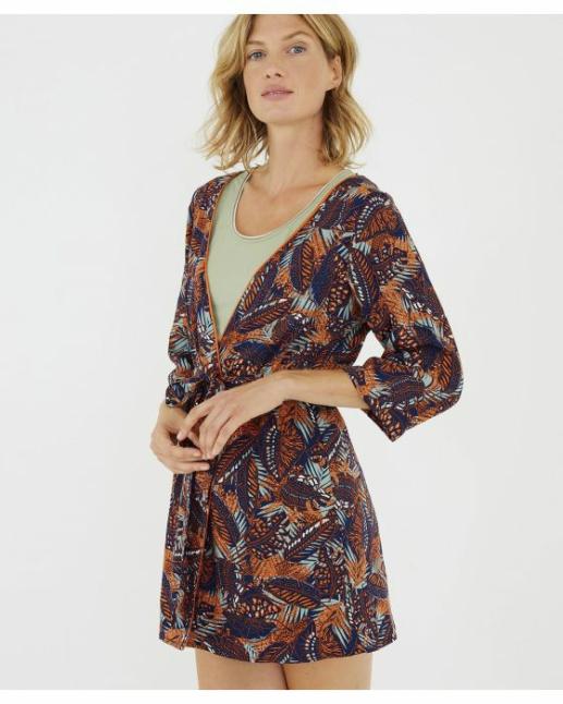 Damart Détente, Confort | Femme Robe De Chambre Forme Kimono, Maille Bouclette Bleu Outremer