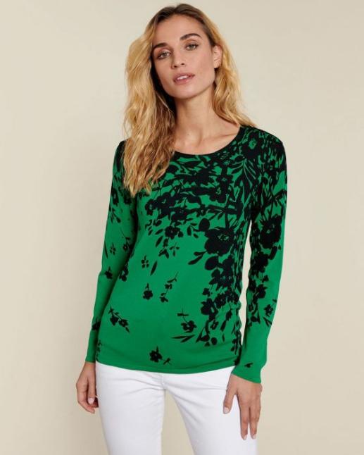 Damart Pull Femme Imprimé Fleurs avec Strass – Vert Golf