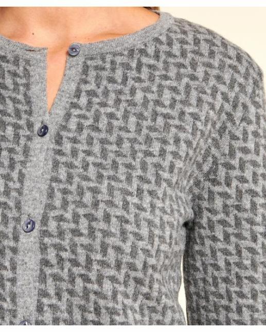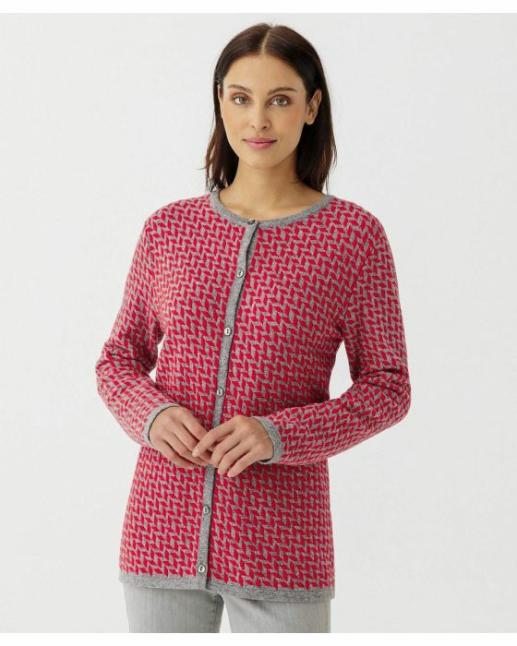 quantité de Damart Pulls, Gilets | Femme Cardigan Maille Jacquard Unie Et Bicolore Cayenne Bicolore