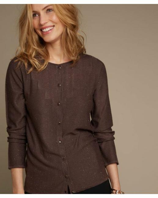 Damart Pulls, Gilets | Femme Gilet Boutonné Col Rond Scintillant Raisin