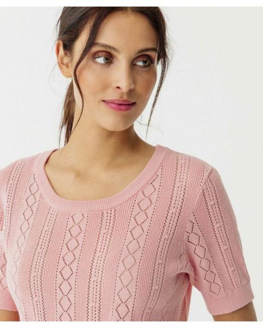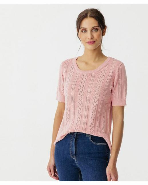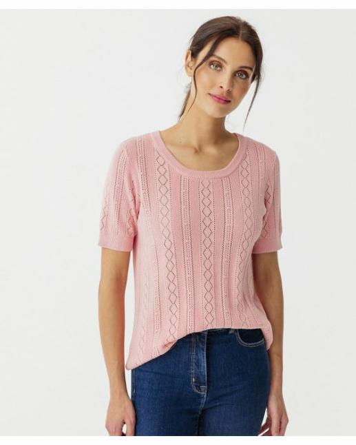 Damart Pulls, Gilets | Femme Pull Ajouré Manches Courtes Rose Tendre
