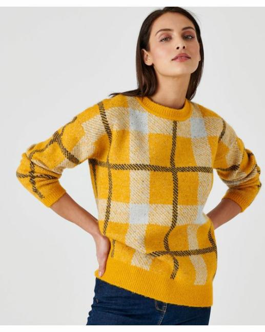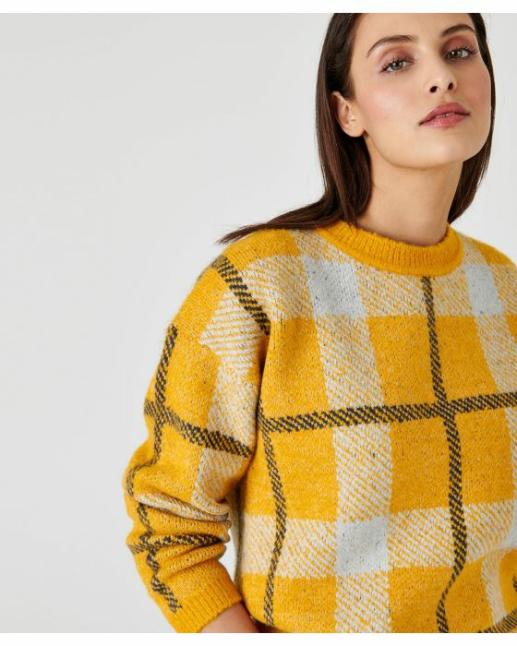 Damart Pulls, Gilets | Femme Pull Ample Maille Thermolactyl Carreaux Jaune