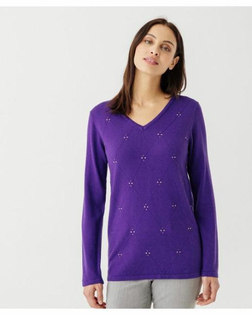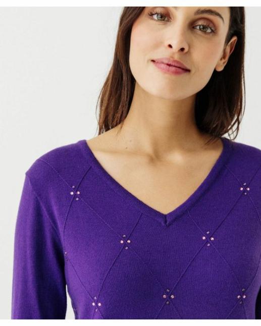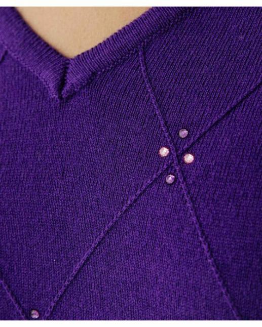 Damart Pulls, Gilets | Femme Pull Col V Maille Fantaisie Strass Violet