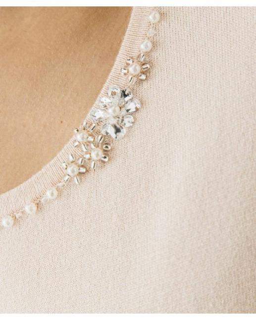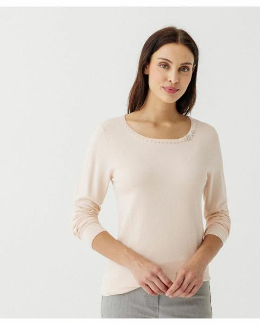 Damart Pulls, Gilets | Femme Pull Encolure Bijoux Fantaisie Rose Poudré