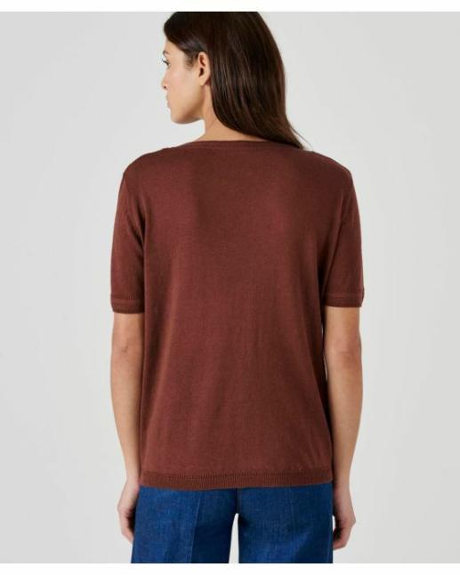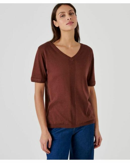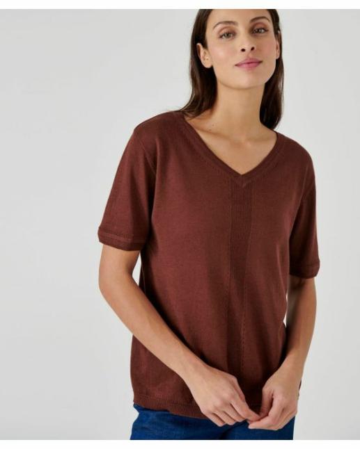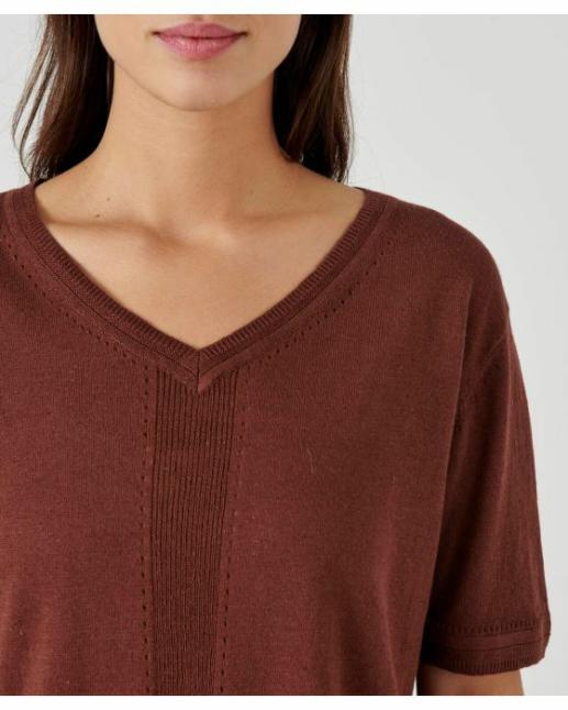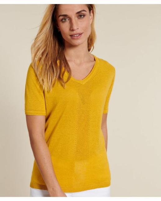 - ce mélange permet de préserver les qualités du lin face à la chaleur, tout en préservant la tenue et la solidité grâce aux fils de coton. A noter la féminité d’une fantaisie pointelle en finition et aux emmanchures à laquelle s’ajoute une bande en fin bor