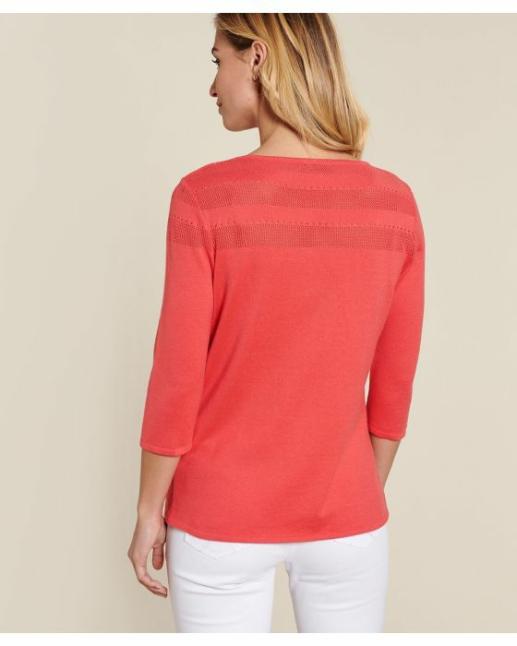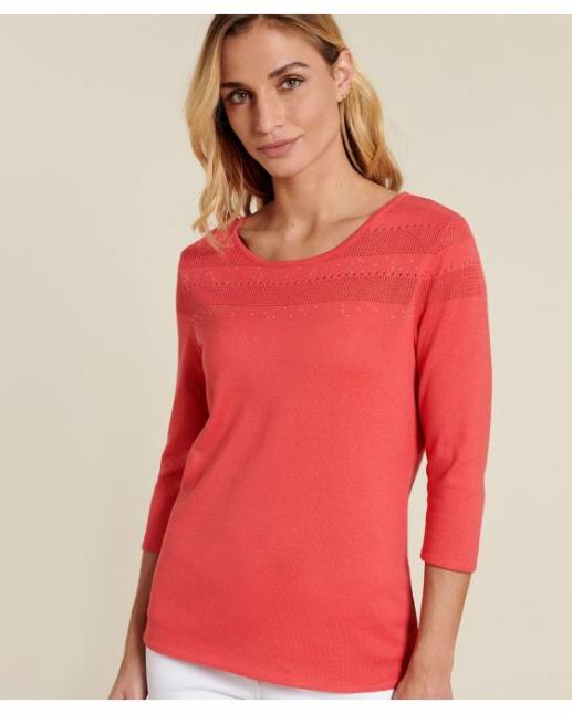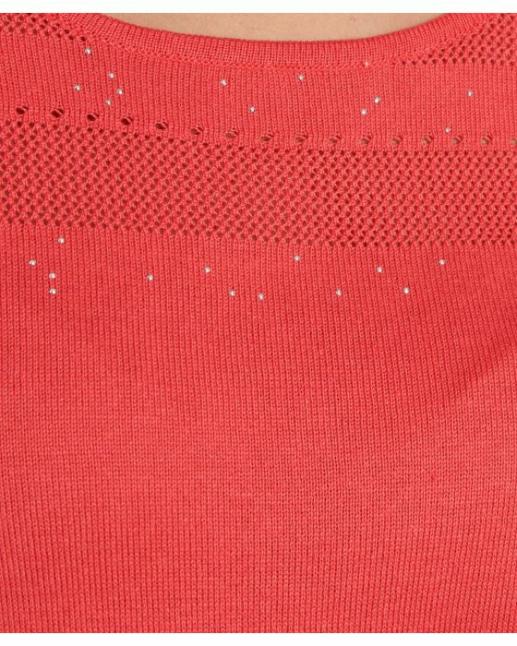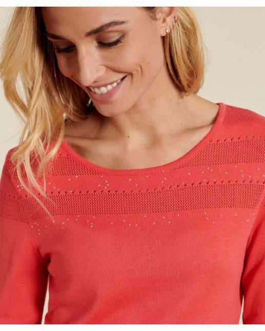 Damart Pulls, Gilets | Femme Pull Maille Ajourée Et Strass Fraise