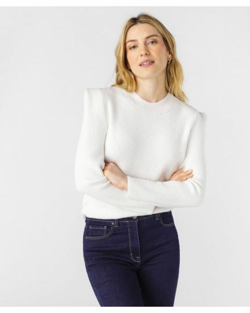 Damart Pulls, Gilets | Femme Pull Maille Perlée Épaules Fantaisie Blanc Cassé