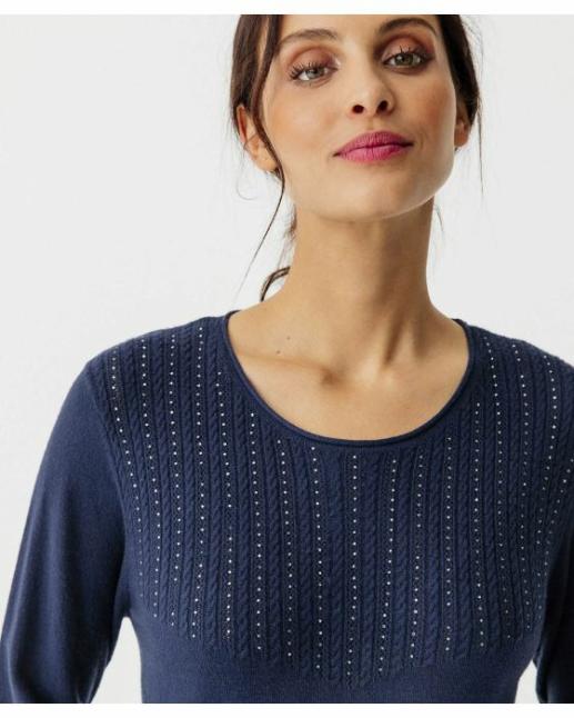 Damart Pulls, Gilets | Femme Pull Mini-Torsades, Maille Fluide Marine
