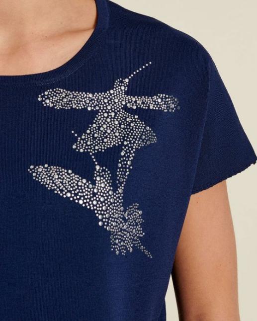 Damart Pulls, Gilets | Femme Pull Motif Strassé Marine