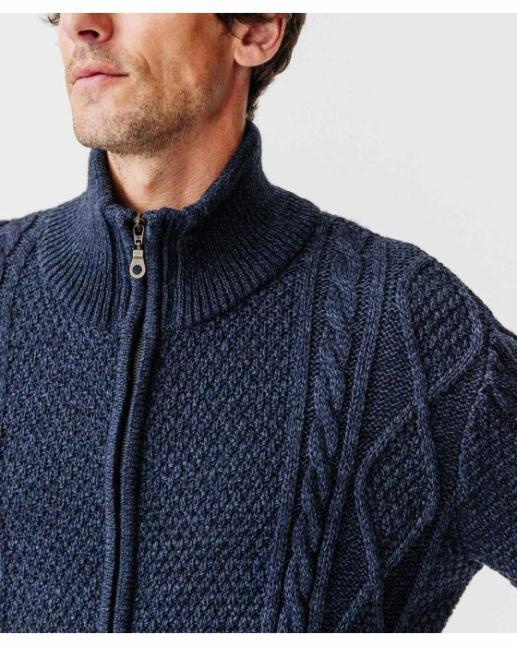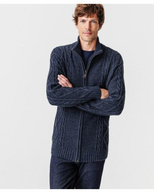 Damart Pulls, Gilets | Homme Gilet Style Irlandais 30% Laine Marine Chiné