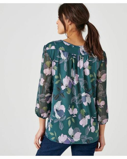 - Manches en voile léger créant une silhouette aérienne et raffinée