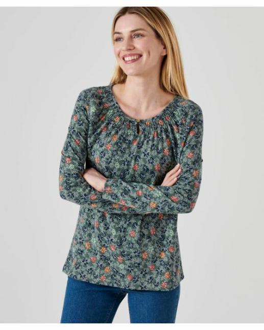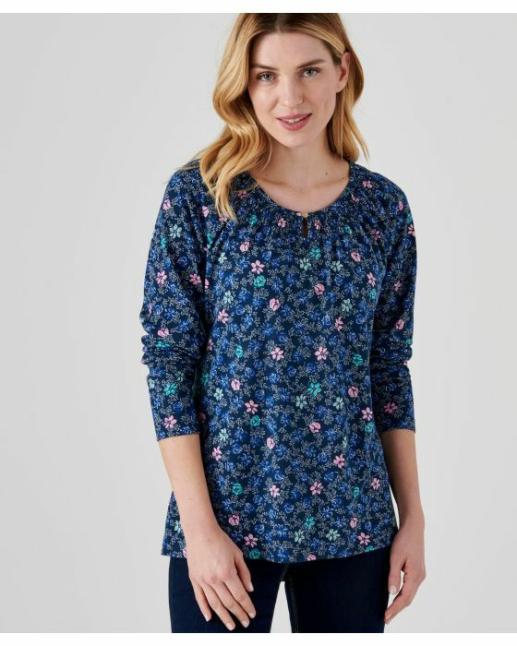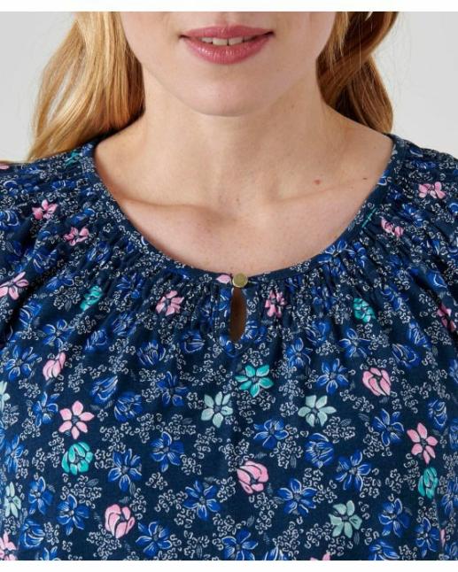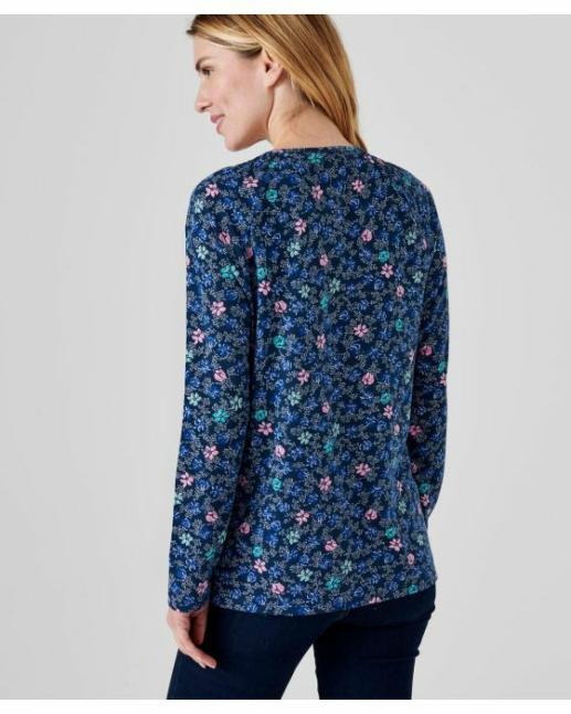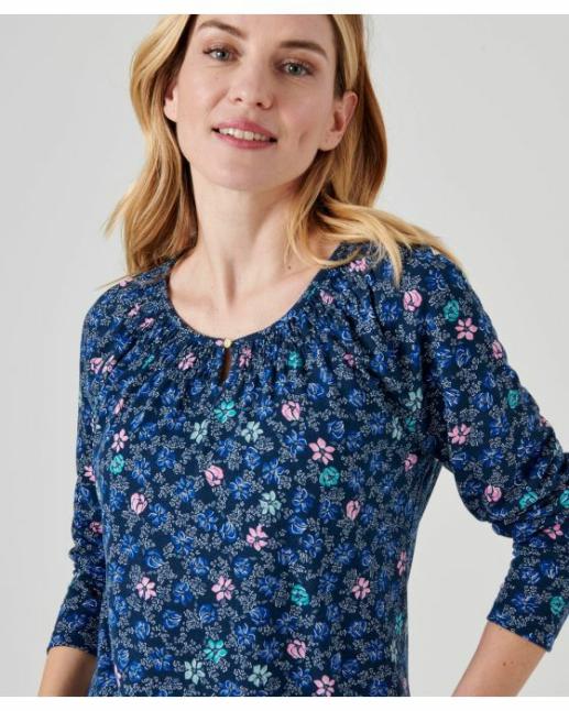 Damart Tee-Shirts | Femme Tee-Shirt Chaud Maille Issue D’Une Démarche Éco-Responsable Bleu Fleuri