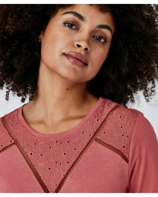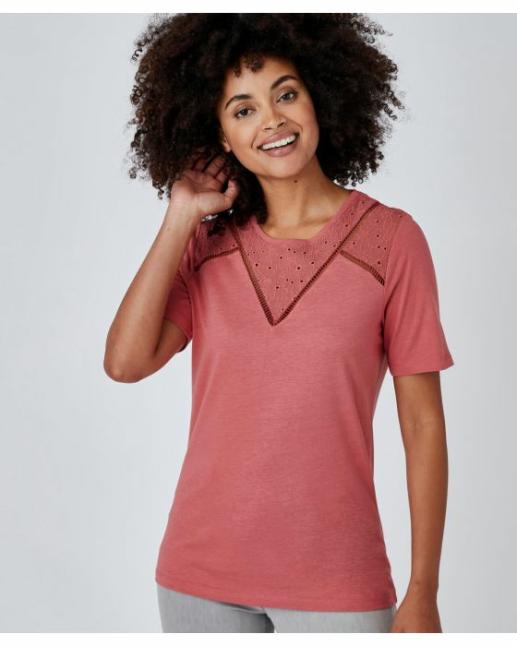 Damart Tee-Shirts | Femme Tee-Shirt Détails Broderie Anglaise Et Ajourés Blanc