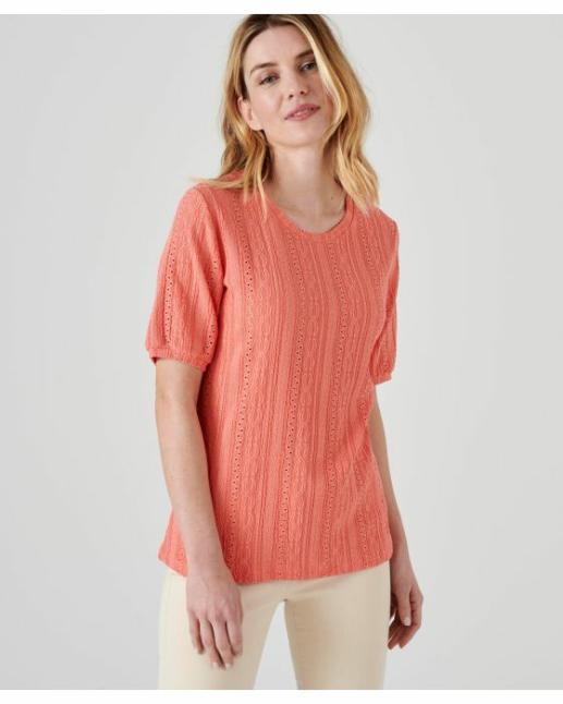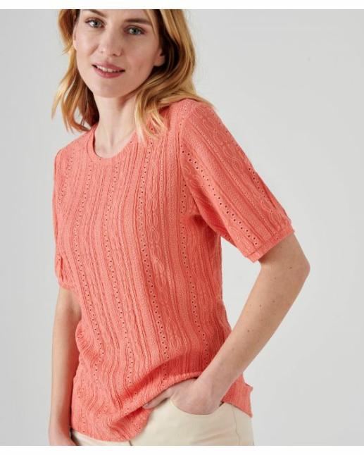 Damart Tee-Shirts | Femme Tee-Shirt Effet Macramé Blush Corail