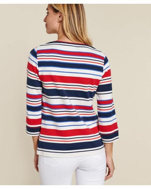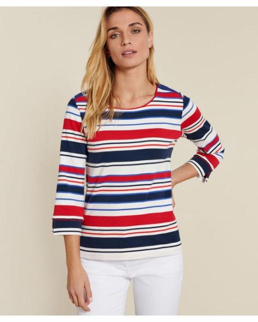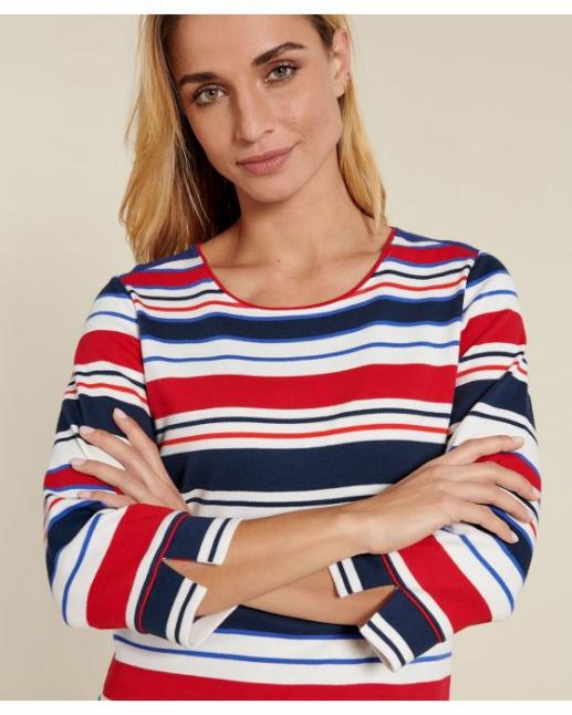 Damart Tee-Shirts | Femme Tee-Shirt Esprit Marin Coquelicot Rayé