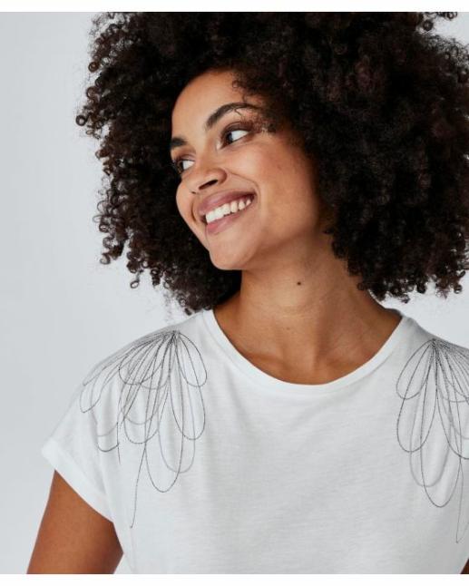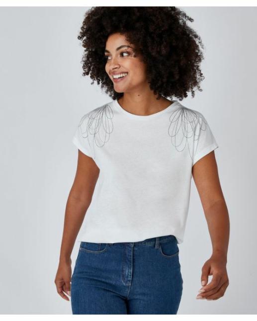 Damart Tee-Shirts | Femme Tee-Shirt Fantaisie Chaînette Blanc Cassé