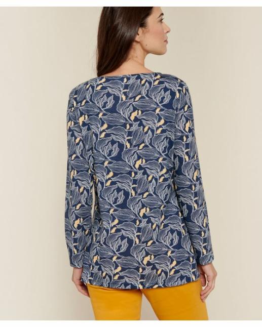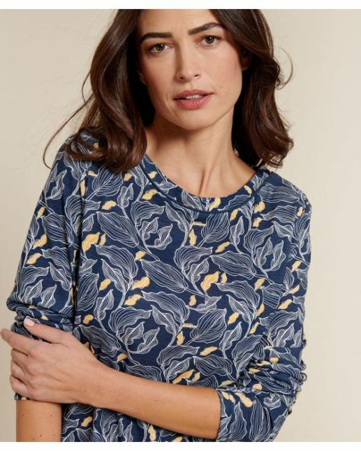 Damart Tee-Shirts | Femme Tee-Shirt Imprimé En Maille Chaude Marine Imp.