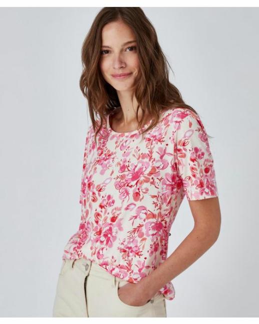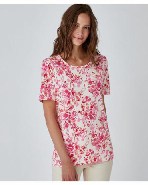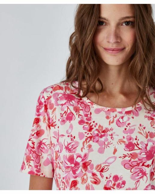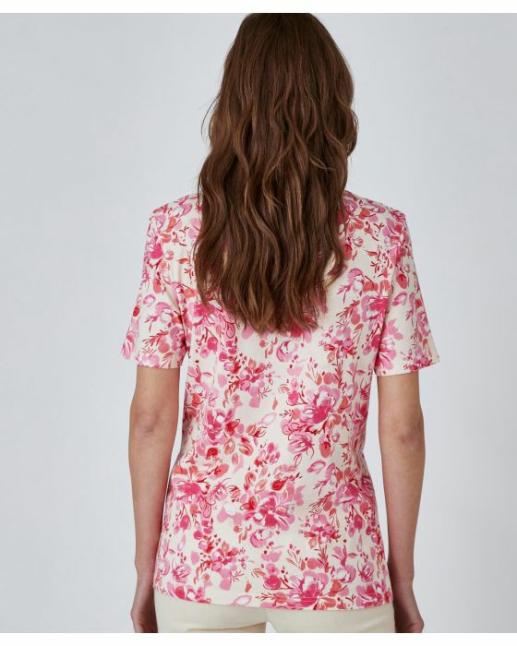Damart Tee-Shirts | Femme Tee-Shirt Imprimé Floral Coton Biologique Rose Fleuri