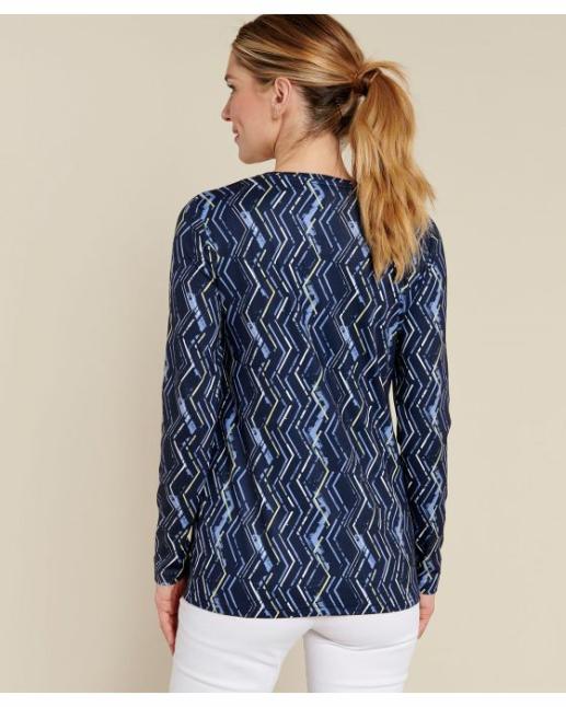 Damart Tee-Shirts | Femme Tee-Shirt Imprimé Géométrique Marine Imp.