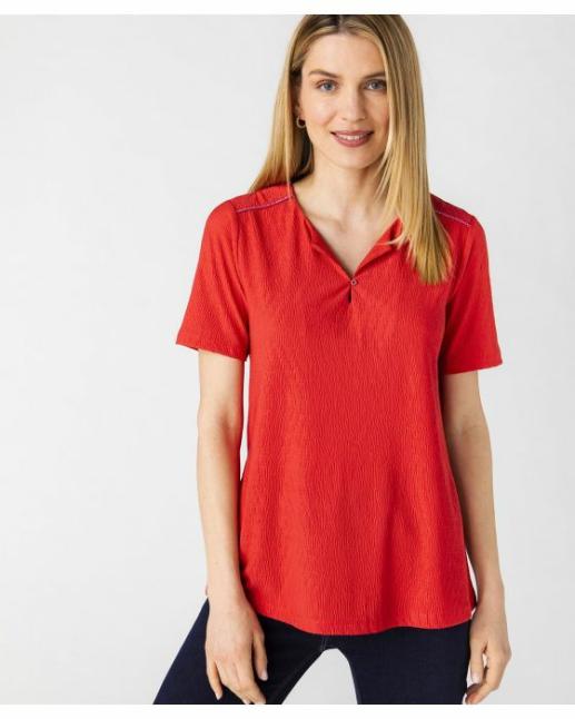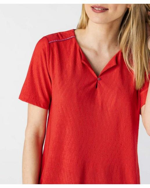 Damart Tee-Shirts | Femme Tee-Shirt Maille Plissée Biais Brillant Framboise