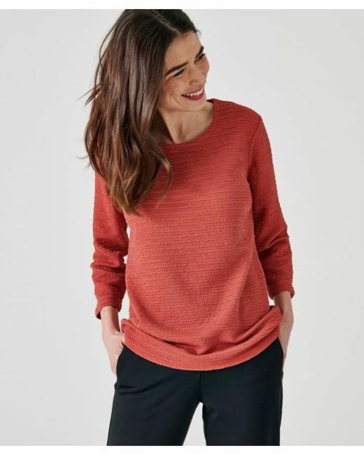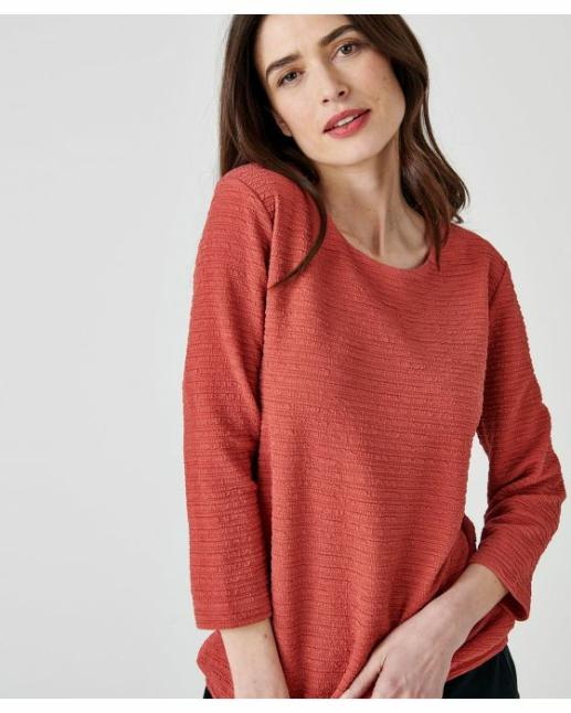 Damart Tee-Shirts | Femme Tee-Shirt Manches 3/4 Maille Jacquard Rose