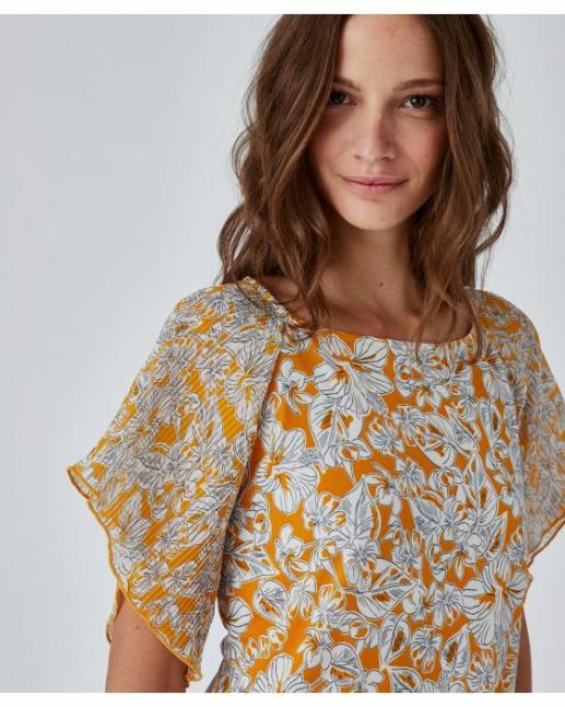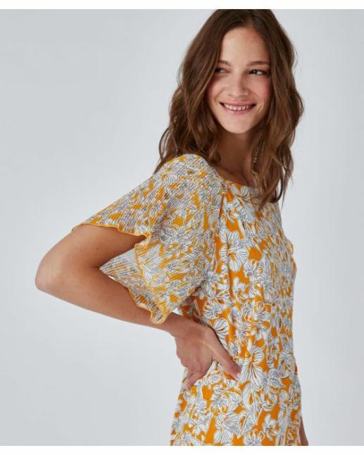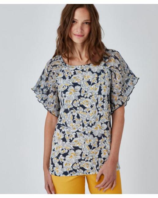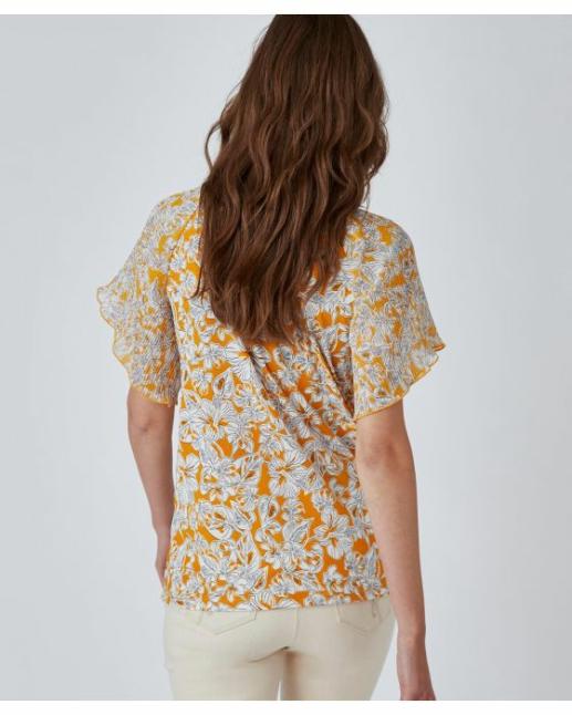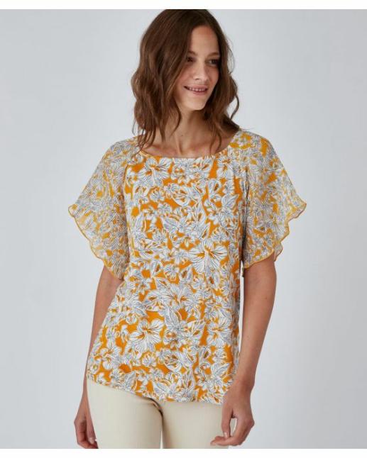 Damart Tee-Shirts | Femme Tee-Shirt Manches En Voile Plissé Jaune Exotique