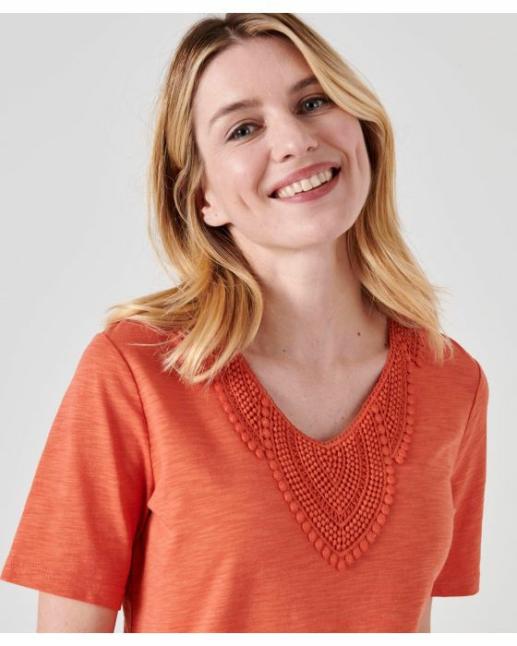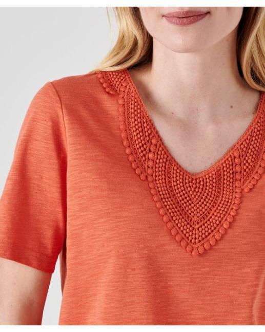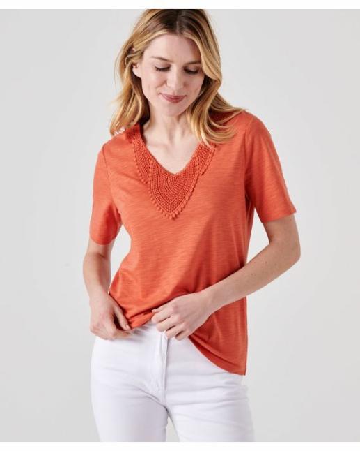 Damart Tee-Shirts | Femme Tee-Shirt Mélange Coton Biologique Orange Brique