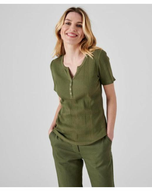 Damart Tee-Shirts | Femme Tee-Shirt Pur Coton Côtes Placées Lin