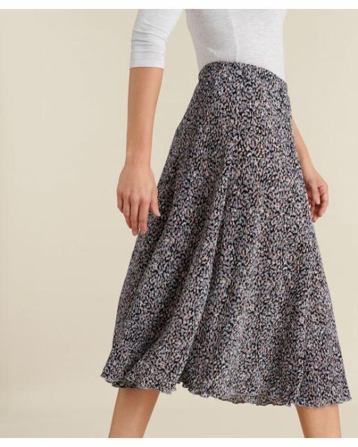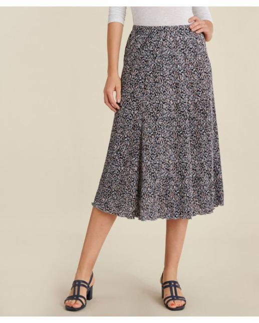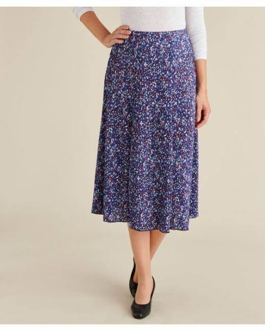 Jupe Plissée Fleurie Bleu Indigo Damart – Élégance Florale