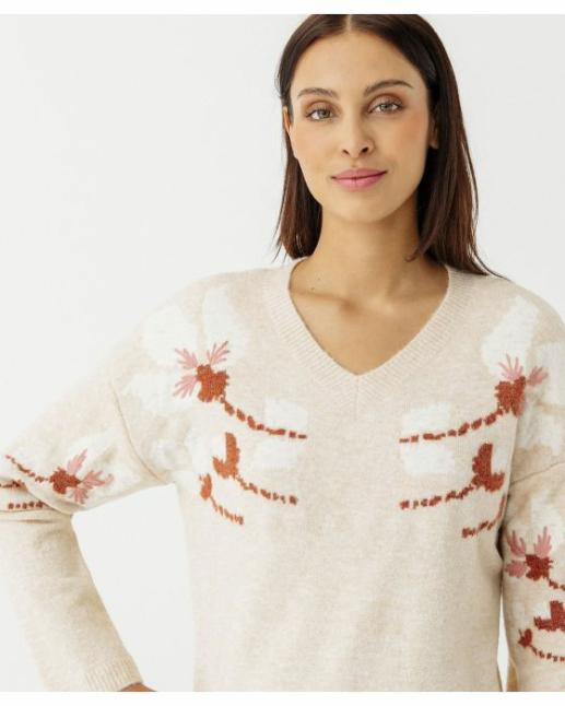 Pull Femme Damart – Col V Éco-Responsable Brodé